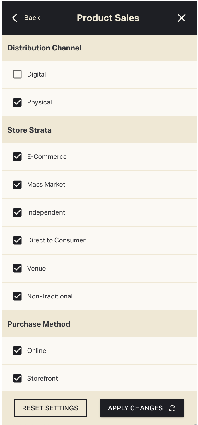 Refine your analysis with optional data filters, like Release Age, Genre or Format. Available filters and menu sections change based on your selections for everything else.