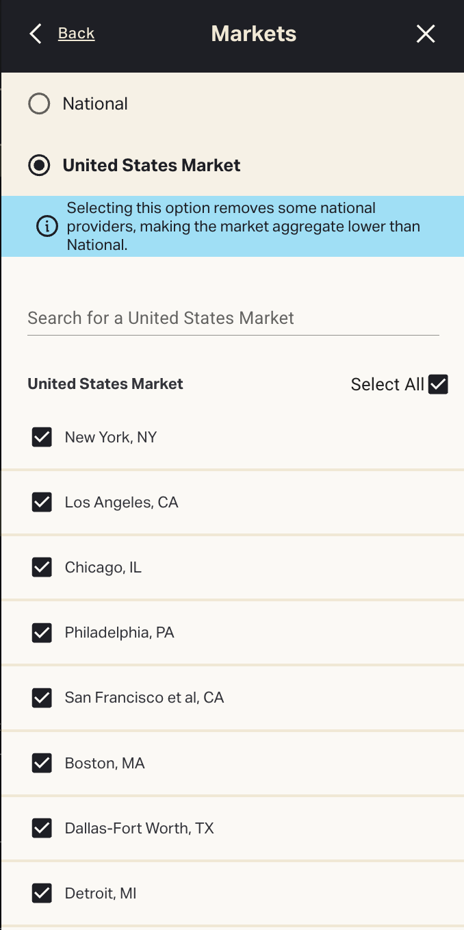 CONNECT tracks over 200 markets in the U.S. and over 70 in Canada. Market-level data is available for some subscribers (if Markets aren’t available for your account or location, the MARKETS tab won’t appear).