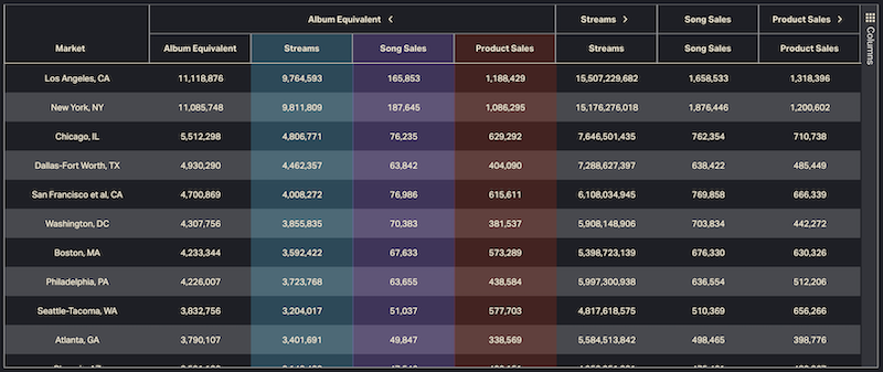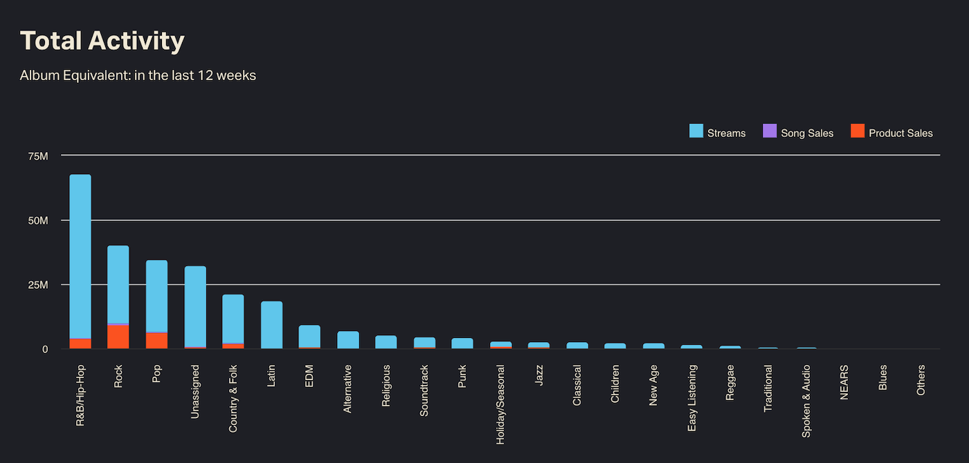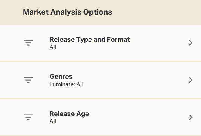 Industry Analysis aggregates music consumption data at the industry level for a broader view of streaming and sales performance. Use it to see big-picture trends or evaluate combined location, genre and provider data.
