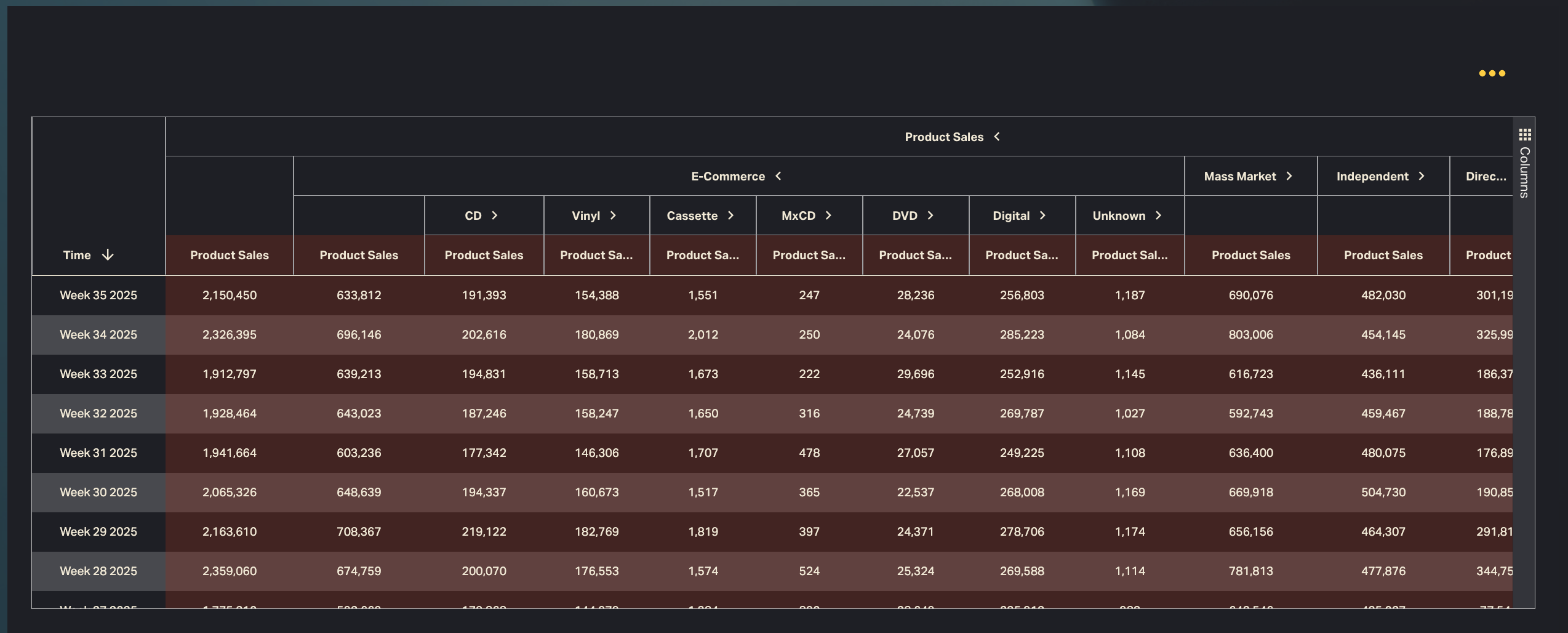 At the bottom of every Analysis tab or activity view, consumption data is viewable in grid format.