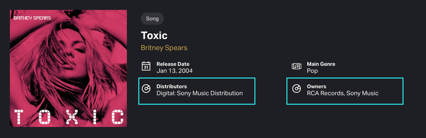 We track ownership and distribution claims at the recording level and display these on Song and Recording Dashboards.
