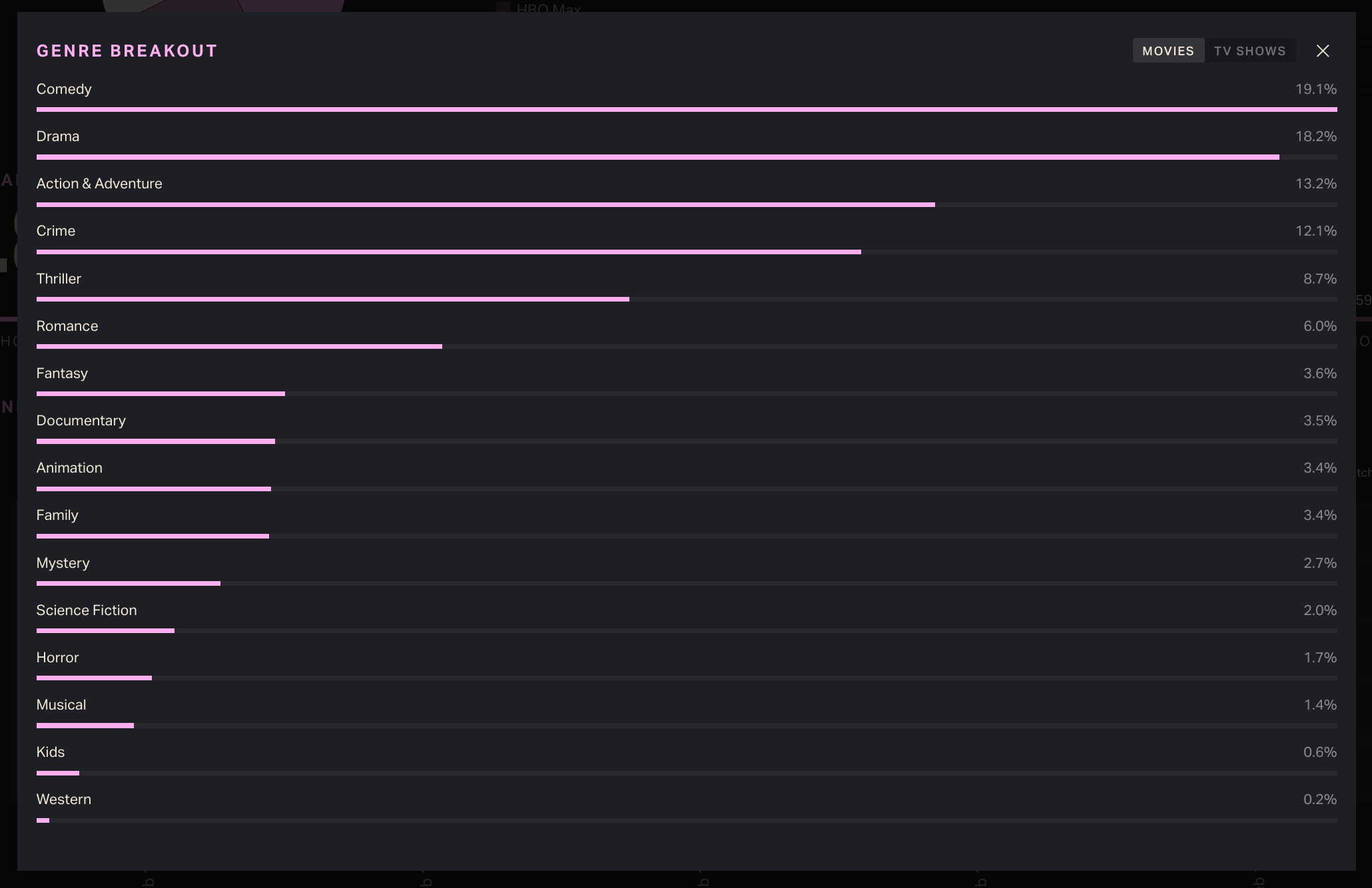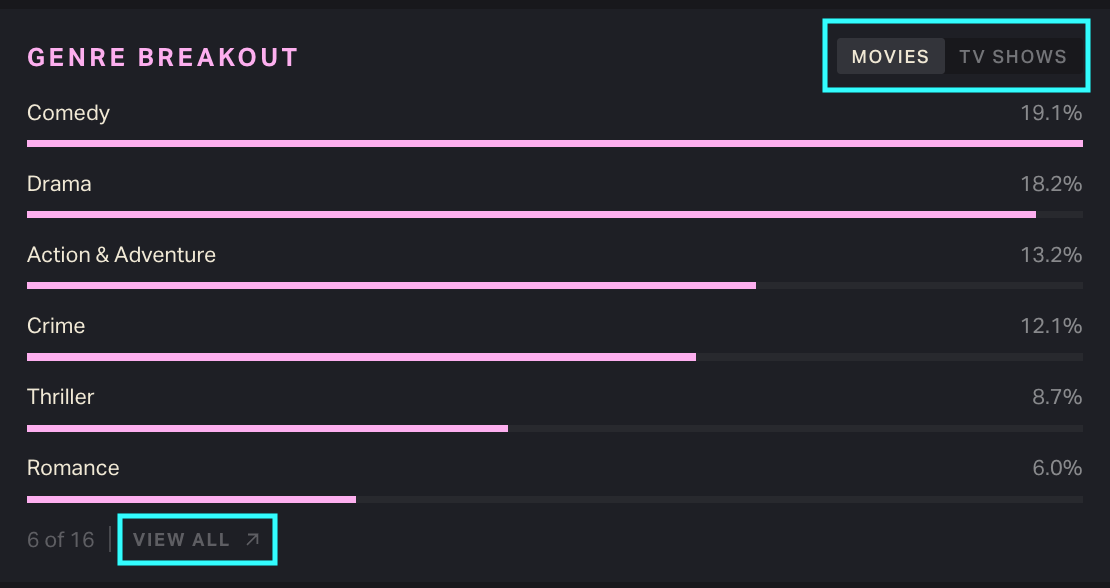 The graph at top right lists the most popular streaming movie or TV show genres within your time frame.