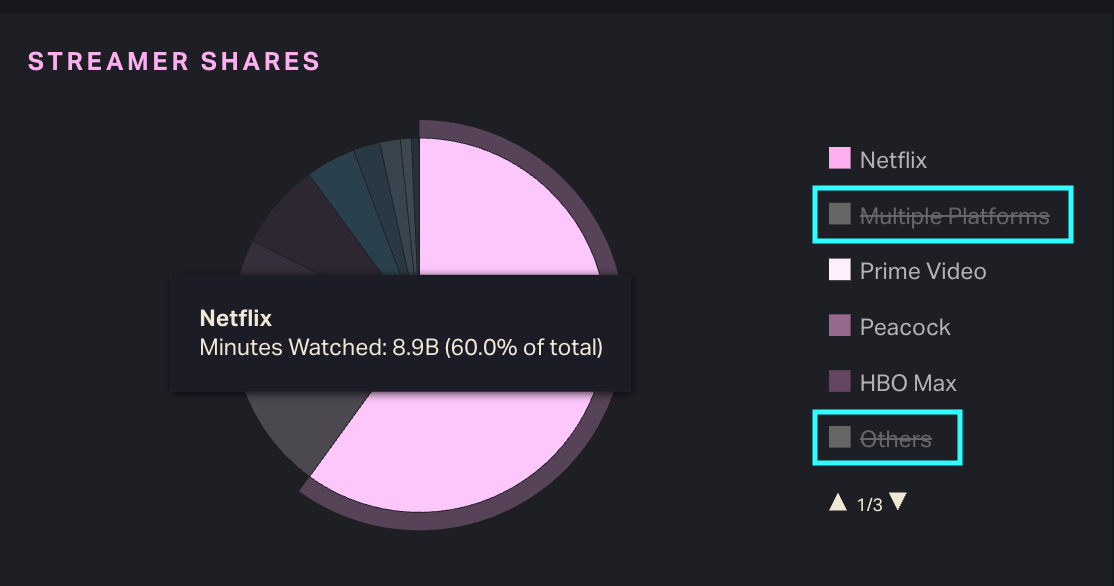 See above. If a title is available on more than one platform during the selected time frame, the Streamer Shares chart attributes viewership to “Multiple Platforms.”