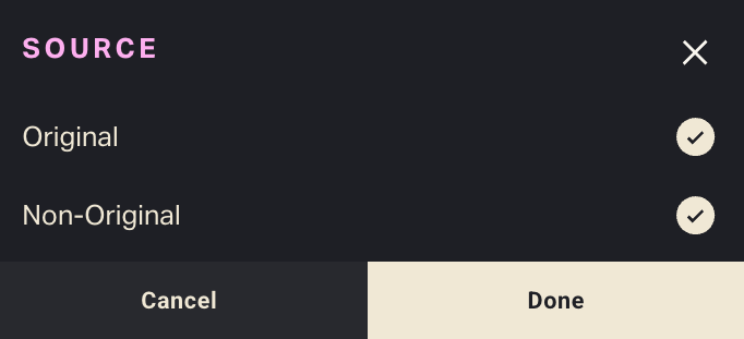 Genre selectionOpen the Genre pop-up to change the default selection from All.You can choose as many genres as you want to include.Some titles have more than one genre designation. Selecting a genre will include any title with that genre attached, even if it’s not the only one that applies. For example, choosing Animation will most likely include titles in Family, Kids and Comedy as well.Click DONE to close the menu with your genre selection applied.Platform selectionFilter by streaming platform availability.Setting platform filters will exclude titles that aren't available on any of those streamers during your selected time frame.NOTE: Just as several genres can apply to one title, many titles are available concurrently on more than one platform. The Platform filter captures "platform of origin" as well as "all other platforms that offer the title to stream."Source: Original or Non-OriginalChoose whether to include titles that are Original (streaming-first), Non-Original (library/licensed) or both.
